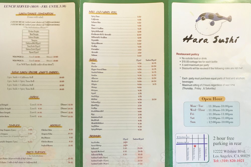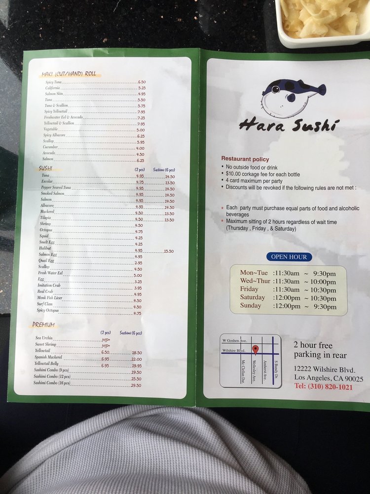 Hara Sushi is a casual yet vibrant Asian-owned restaurant located in Los Angeles, CA, offering a variety of sushi options with vegan and vegetarian choices. The menu includes creative rolls like the Kaiju roll with spicy tuna and sliced pineapple, and the popular crispy rice spicy tuna. Customers praise the generous portions, reasonable prices, and delicious flavors. The restaurant provides wheelchair accessibility, outdoor seating, and has a clean, spacious dining area. Despite the casual atmosphere, Hara Sushi's quality service and fresh, tasty dishes make it a go-to spot for many patrons. With offerings like happy hour specials on beer and sake, it's a great choice for a relaxing meal with friends or family. Overall, Hara Sushi stands out for its consistent excellence in sushi and welcoming ambiance.